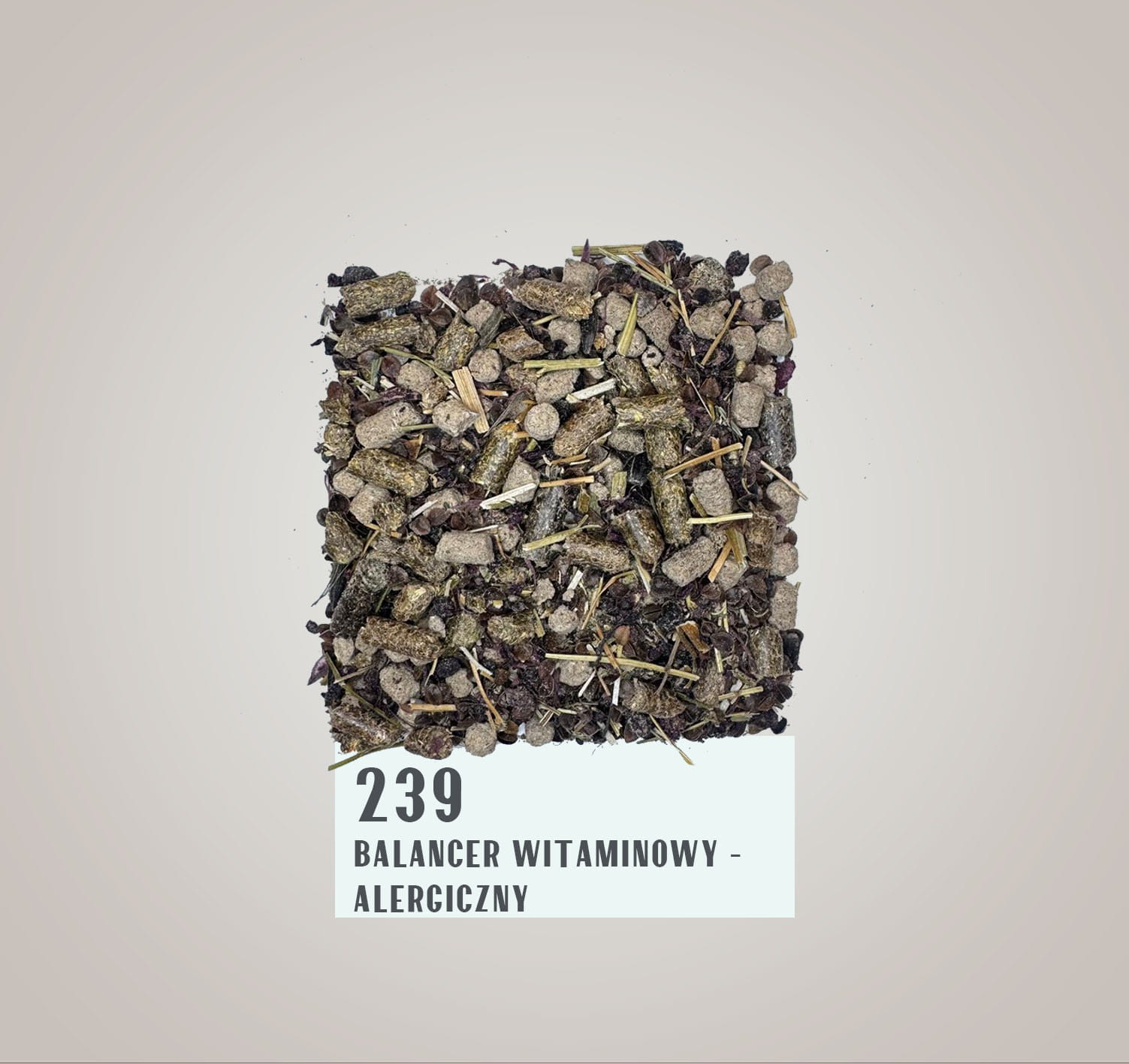 "239" to balancer nowej generacji w formie smacznego musli z niskim poziomem skrobi i cukrów prostych, pozbawiony najczęściej występujących alergenów, zachęcający konie do pobierania pokarmu; główne cechy produktu: